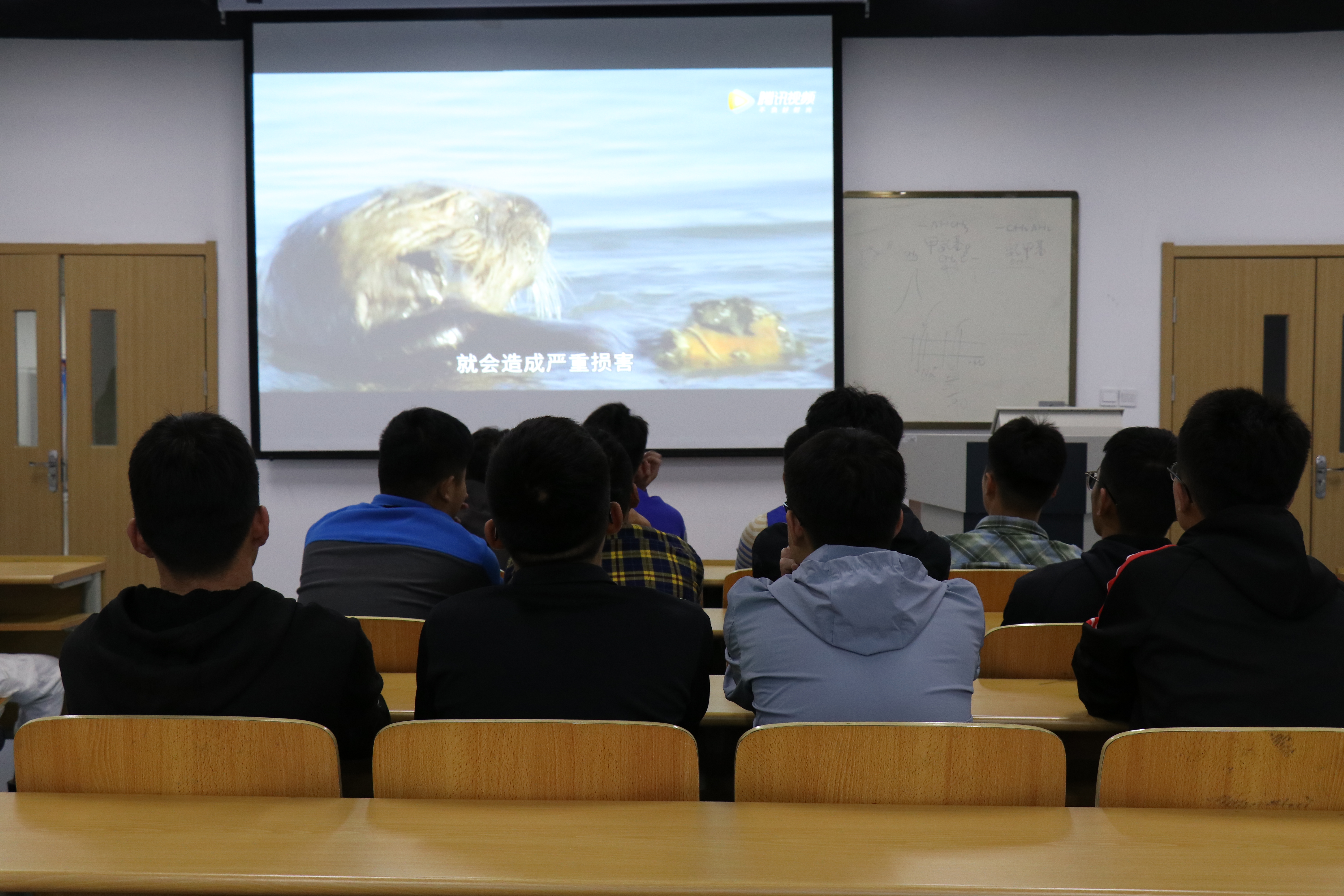 团课上,各班级团支书为同学们播放了BBC大型纪录片《蓝色星球》第一季第五集——季节性海域。视频讲述了拥有数以万计的鱼以及无边无际的浮游植物的季节性海洋。由于位于地球温带,海洋的环境一年四季都在变化,因此也是地球上最为富饶的海域。在环境最为恶劣的时候,灰海豹繁育后代又在哺乳小海豹18天后将其遗弃返回海中觅食。喜欢在夜间觅食的灯光鱼擅长寻找沙陆中的无脊椎动物,不曾想海草鱼还在一边等待不劳而食的痛快。除此之外,还有龙虾的洞穴之争,螃蟹从素食到肉食、从弱者变为巨兽的五年艰辛,鲑鱼等待水位上升的漫漫产卵路,鲱鱼被天空掠食者轻易捕食的窘境……