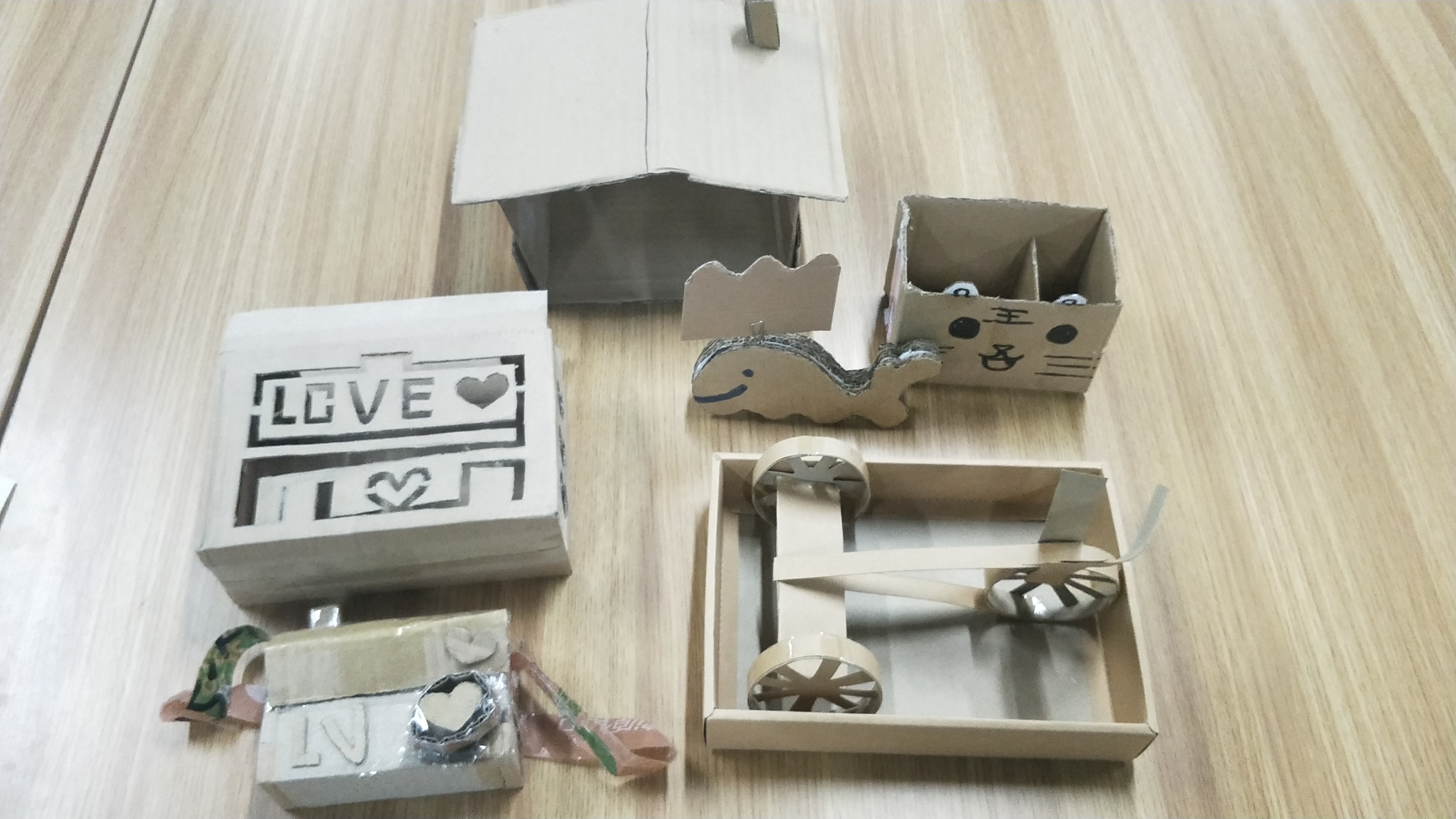菜鸟回箱,也不忘回收利用。在城阳校区菜鸟绿色行动宣传回收点,常常可见志愿者们正埋头对快递盒进行挑拣、纸塑分离等操作,方便快递盒再次利用。并现场展示了收纳盒、笔筒、可穿戴宣传人偶等DIY制作品。