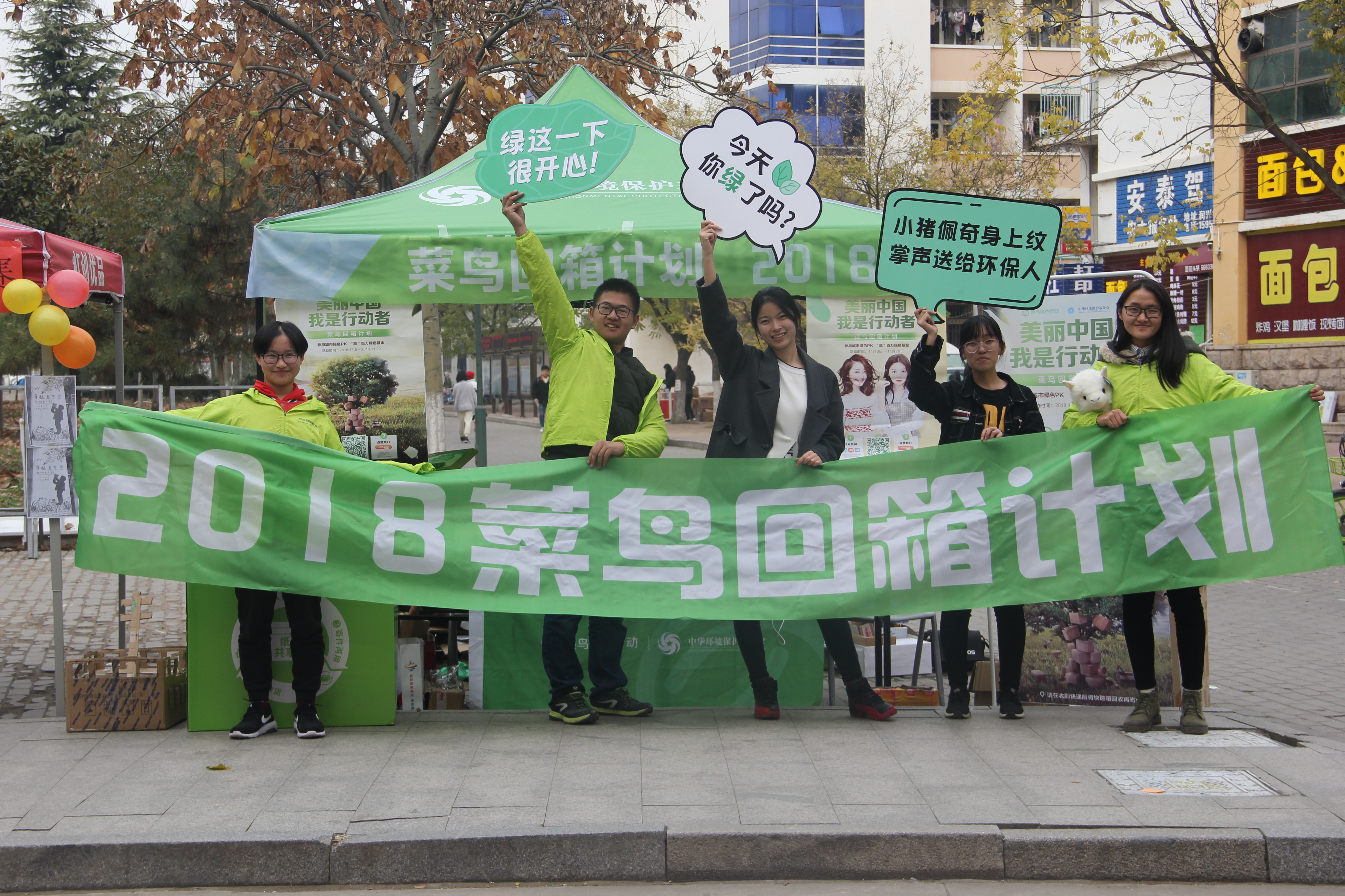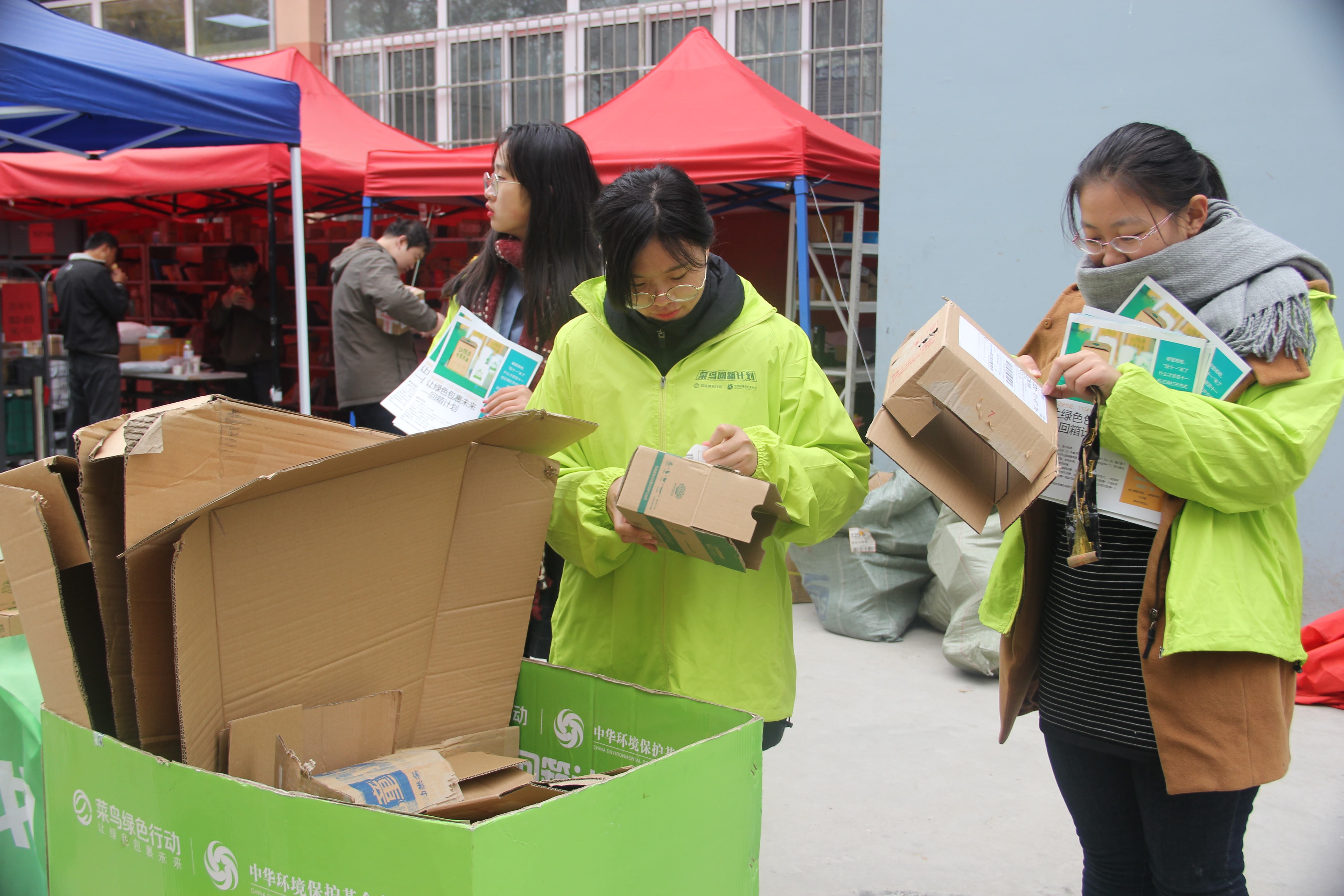 11月10日,“菜鸟绿色行动——2018菜鸟回箱计划”正式开始,并于城阳校区东苑三号楼前、海都餐厅菜鸟驿站旁、西苑广场和蓝谷校区宿舍楼外设置宣传回收点。活动持续十余天,共回收快递包装箱3093个,重量达624公斤。