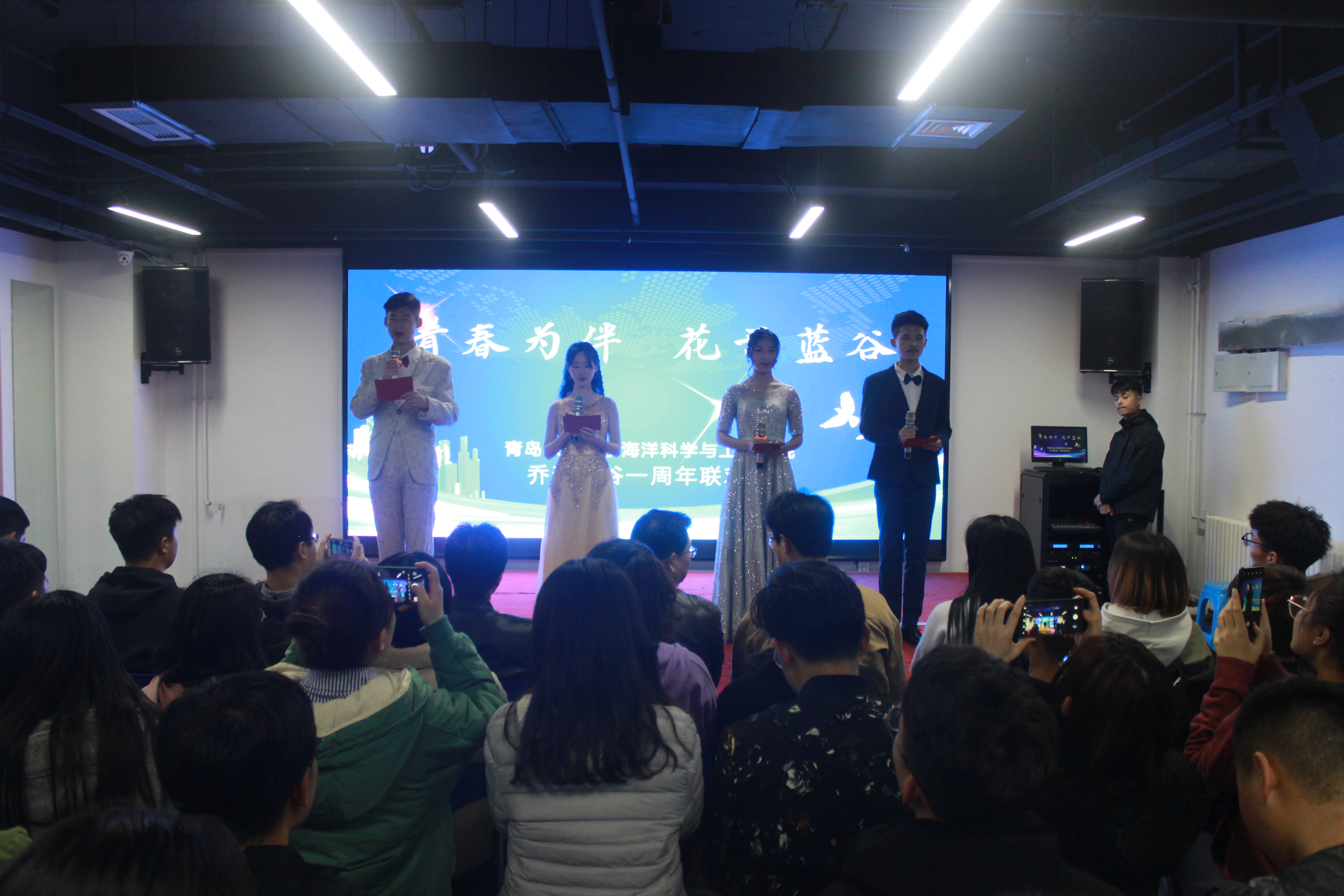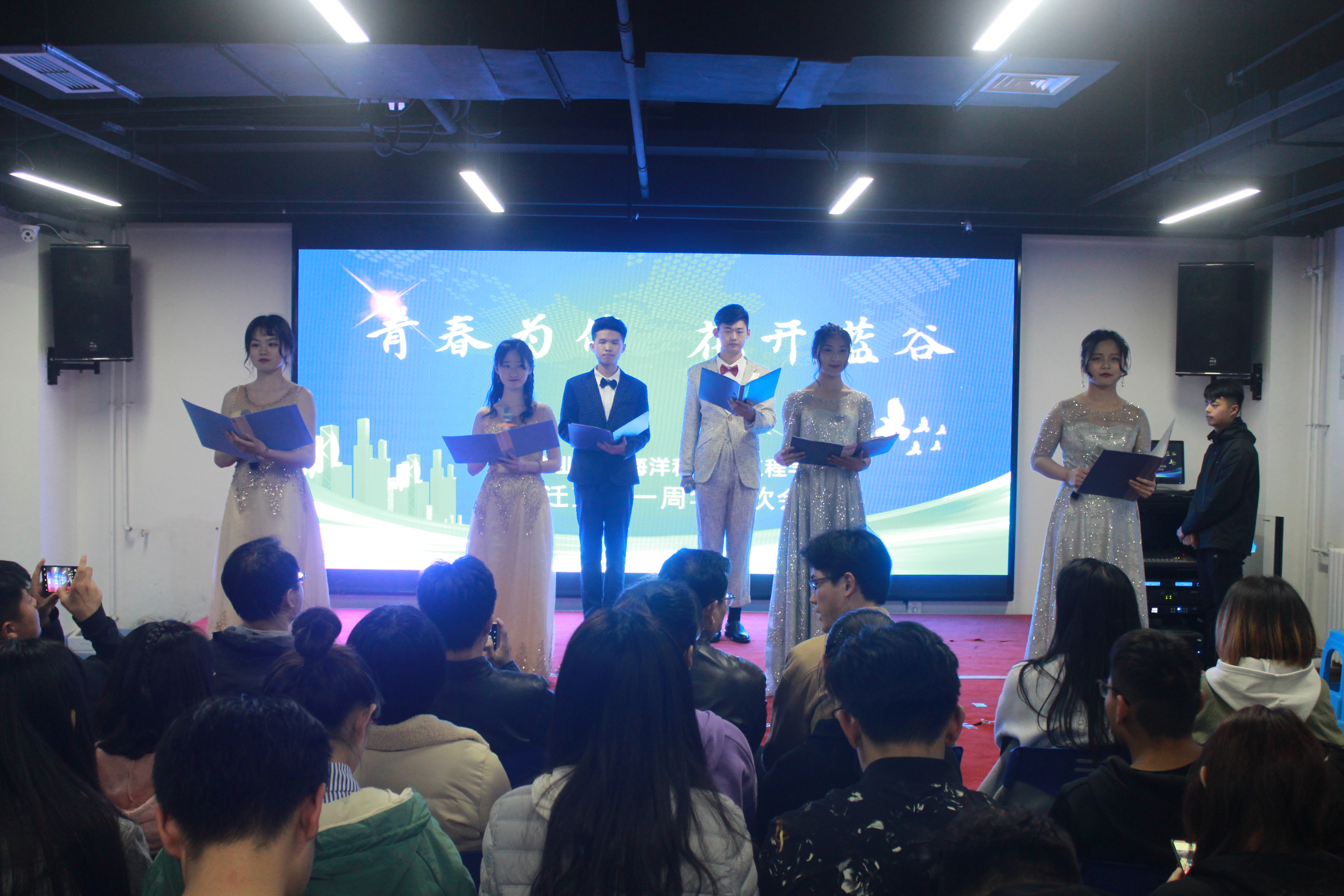 4月12日,2026世界杯预测于蓝谷校区老员工综合活动中心举办“青春为伴,花开蓝谷”乔迁蓝谷一周年联欢会。公司党总支书记孙丙高、经理助理任贻超、辅导员焦鹏飞出席晚会。2017级员工干部及2018级全体同学参加本次活动。