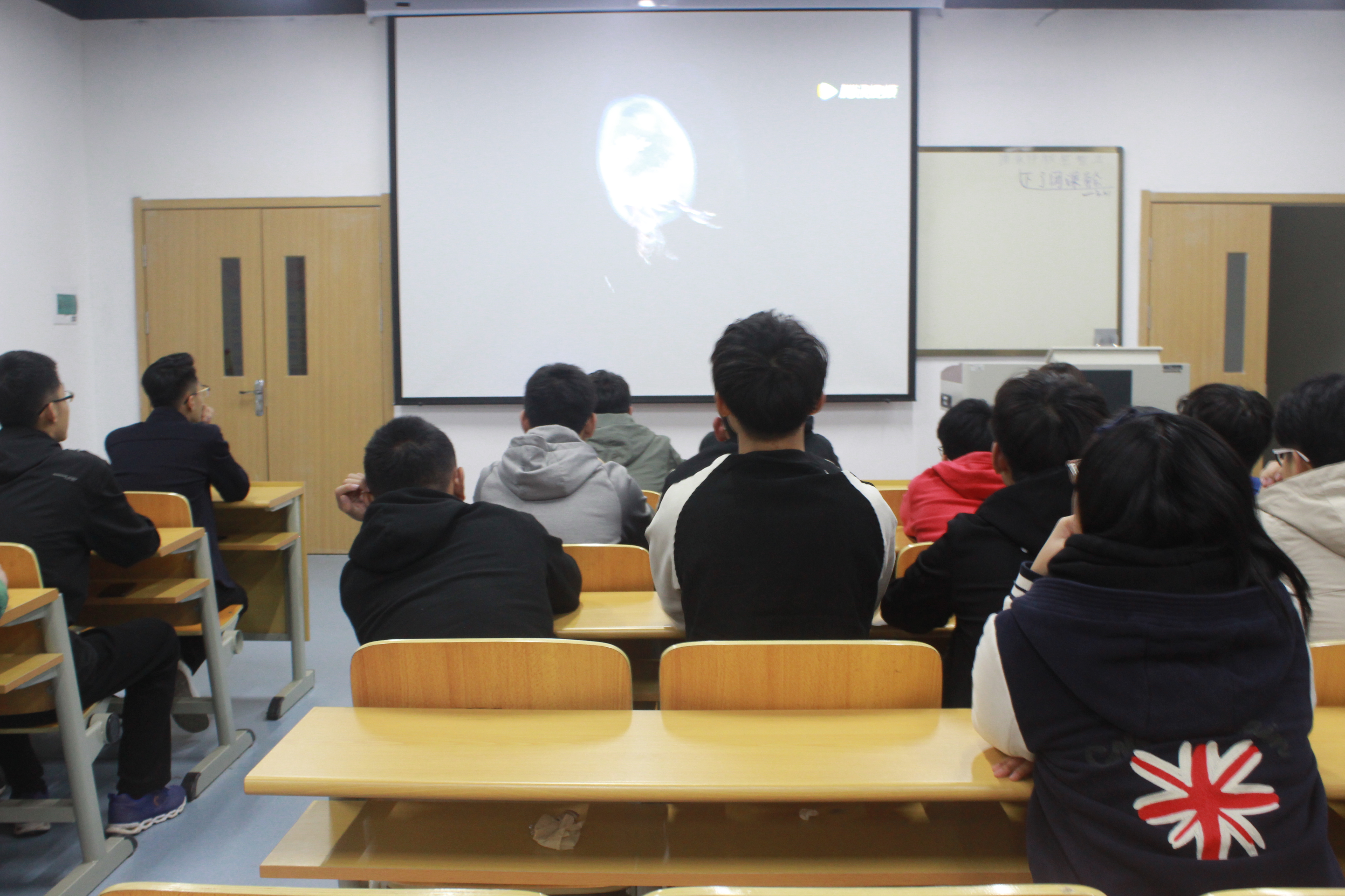 团课上,各班级团支书为同学们播放了BBC大型记录片《蓝色星球》第一季第二集——深海。视频带领同学们走进了陌生的深海海底,揭示不为人知的海底生物奥秘。在阳光难以透过,压强高温度低的海底,潜水艇观测到忽隐忽现的点点光源。五颜六色的光点,是海洋动物吸引猎物、干扰天敌的利器;透明的身体,锋利的牙齿,或大或小的眼睛,奇特的引诱源,这些难见其踪的生物已然进化适应于人类依然未知的深海。除此之外,与陆上地形相似的海床纷繁复杂,寒冷、黑暗和寂静也给深海增添了独特的魅力。