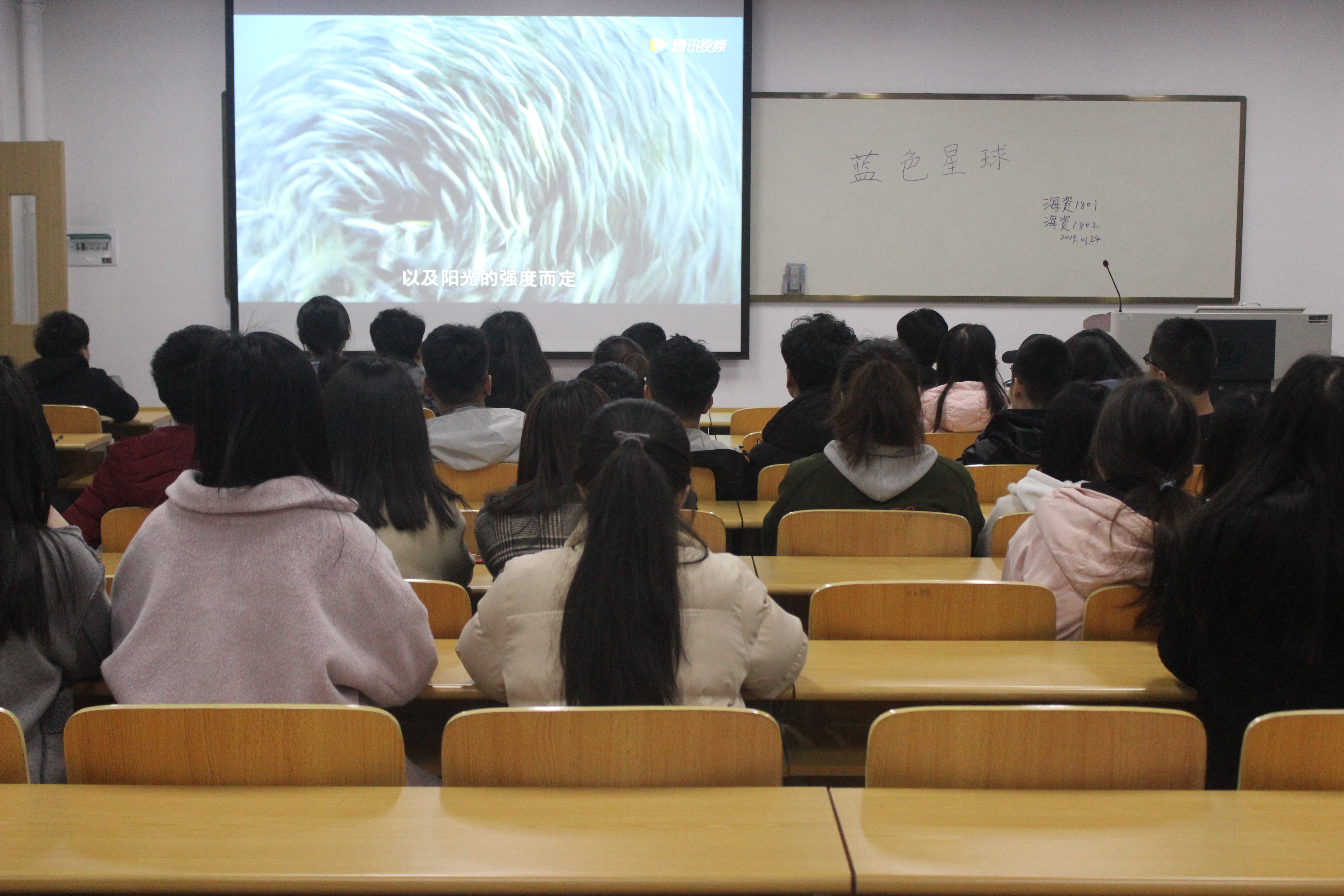 团课上,各班级团支书为同学们播放了BBC大型记录片《蓝色星球》第一季第一集。第一集综观全系列,介绍海洋的不同范畴,完全揭露海洋的规模、力量与复杂性,探索海洋运作的物理与生物力量,并解释如何影响生命聚集的地理位置。本次团课向各位同学介绍了以下几点:一、海洋生物的分布依据养分的洋流流向以及阳光强度而定;二、浮游生物是海洋生命的基础;三、太阳的年周期带给海洋最全面的影响。