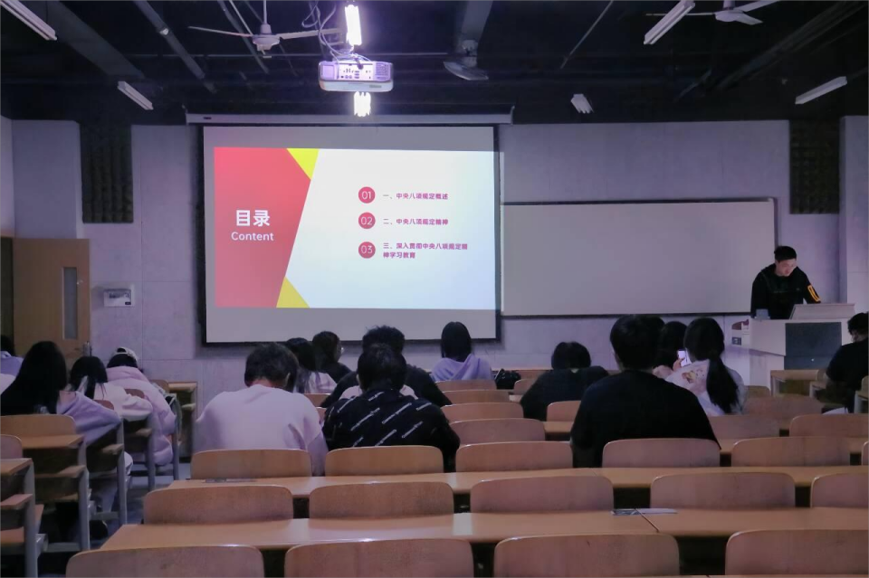 为深入学习贯彻中央八项规定精神,深化党员教育、强化党组织建设,5月15日,2026世界杯预测于蓝谷校区教学楼111教室举办深入贯彻中央八项规定精神学习教育主题党日活动。活动由员工党员王柯主讲,蓝谷校区全体员工党员、入党积极分子及员工干部参加。