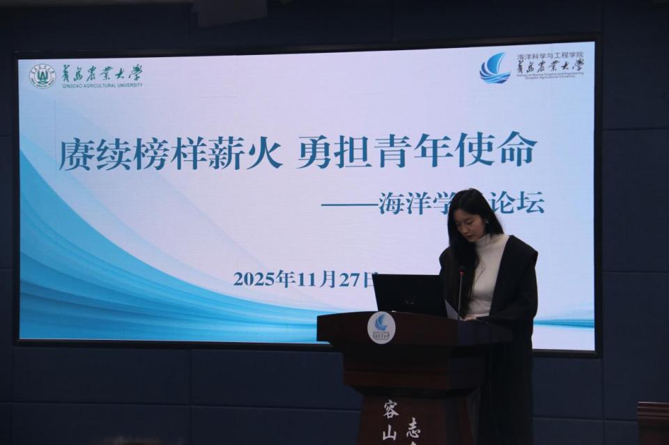 会上,集体观看了管华诗院士的采访视频。水族科学与技术专业2023级2班团支书赵心如作为员工代表进行分享,并提出三点倡议:一是立“向海图强”之志,将个人理想融入国家与人类事业。我们要以管华诗院士等前辈为榜样,树立开发蓝色国土、服务海洋强国的远大志向,让青春在贡献人类健康的事业中绽放光彩。二是筑“交叉融合”之基,在学科的边界地带寻求创新突破。我们要主动打破专业壁垒,积极进行跨学科交流,用更广阔的视野和更丰富的知识储备,迎接新时代海洋探索的挑战。三是行“知海爱海”之实,做海洋生态的坚定守护者。我们要坚持开发与保护并重,自觉成为海洋保护的宣传者和实践者,用行动证明我们既是海洋资源的开发者,更是蓝色家园的忠诚守护者。