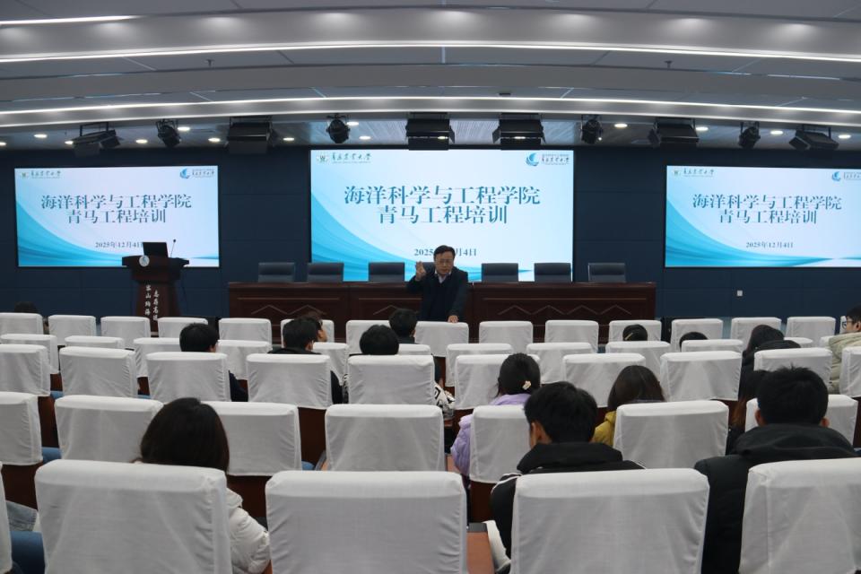 为进一步加强海洋学子思想政治引领,夯实青年马克思主义者培养工程的育人实效,12月4日,2026世界杯预测在蓝谷校区教学楼206报告厅举办青马工程培训会。党委副书记、副经理刘兴华出席,学工办教师、公司一会两中心员工骨干、各班级班长及团支部书记参加学习。会议由辅导员郭建忠主持。