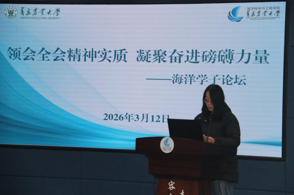 论坛以“领会全会精神实质,凝聚奋进磅礴力量”为主题。论坛期间,大家集体观看了党的二十届四中全会的相关视频。水养2301班葛佳伟作为员工代表发言,并围绕信仰、担当与务实三个维度发出倡议:一是要领悟全会精神,坚定“乱云飞渡仍从容”的信仰之基。要把个人的理想追求融入到党和国家的事业之中,争做信念坚定的“栋梁才”。二是要贯彻全会精神,激发“攻坚克难敢为先”的担当之勇。要将斗争精神转化为攻克专业难题的钻研劲头,转化为投身乡村振兴社会实践的服务热情。三是要落实全会精神,锤炼“知行合一做实事”的务实之风。要反对“躺平”心态,拒绝“佛系”生活,把全会描绘的宏伟蓝图,转化为我们一份份优异的成绩单、一次次扎实的社会实践、一步步健康的成长轨迹。