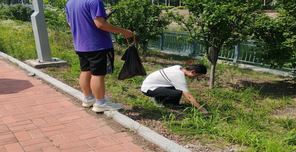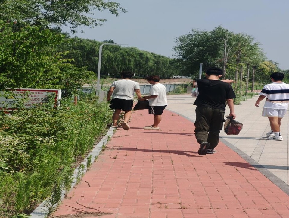 “从捡拾烟头、纸屑、塑料瓶等细碎垃圾,到清除隐藏在植被中的顽固杂物,都要认真对待。”抵达现场后,各小组迅速按照既定分工,有序开展环境清扫作业。大家分工协作、密切配合,针对河岸步道、草丛、河道边等区域,进行“地毯式”清理。同学们不怕脏、不怕累,遇到难以清理的垃圾,小组间还会相互支援,合力攻克难题,展现出团结协作的良好风貌。