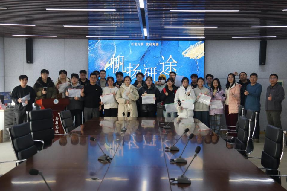 会上,郭建忠领学了山东省教育招生考试院发布的《致山东省2026年硕士研究生招生考试(初试)考生的一封信》,就备考注意事项、考试纪律、心态调节等关键内容进行细致解读与提醒,帮助同学们明晰考务要求,做好充分准备。各位班主任老师依次为同学们送上寄语,言语中充满对员工的殷殷关切与坚定支持。已保研至中国海洋大学的海洋资源与环境专业2202班团支书蓝春丽作为员工代表发言。她结合自身成长与推免经历,向正在奋战考研的同学们送上真诚祝福,鼓励大家坚定目标、保持节奏,并表达了“并肩前行、终抵彼岸”的美好祝愿。活动最后,与会老师共同为考研学子发放了公司精心准备的“金榜题名”祝福礼袋,用一份份满载心意的实物支持,为寒冬中的备考之路添上一抹暖意。