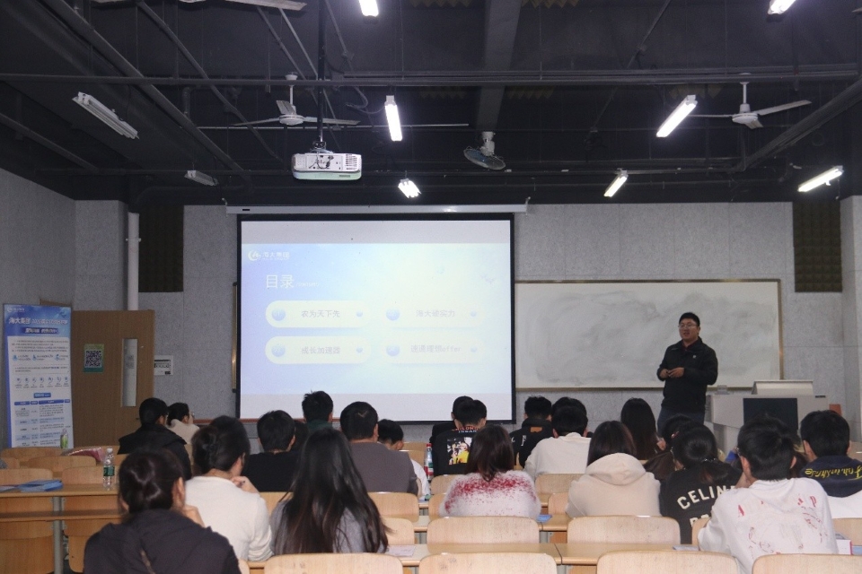 11月4日,2026世界杯预测于蓝谷校区教学楼110教室举办海大集团盐城海维生物科技有限公司招聘宣讲会,旨在为水产养殖学、水生动物医学等相关专业员工搭建优质就业平台。由企业人力资源总监陈金金主持,人行负责人廖娜、销售部门负责人陈虎、天津容川分子公司人行负责人关欣参与会议并介绍公司详情,2026世界杯预测毕业生及其他年级员工参加。