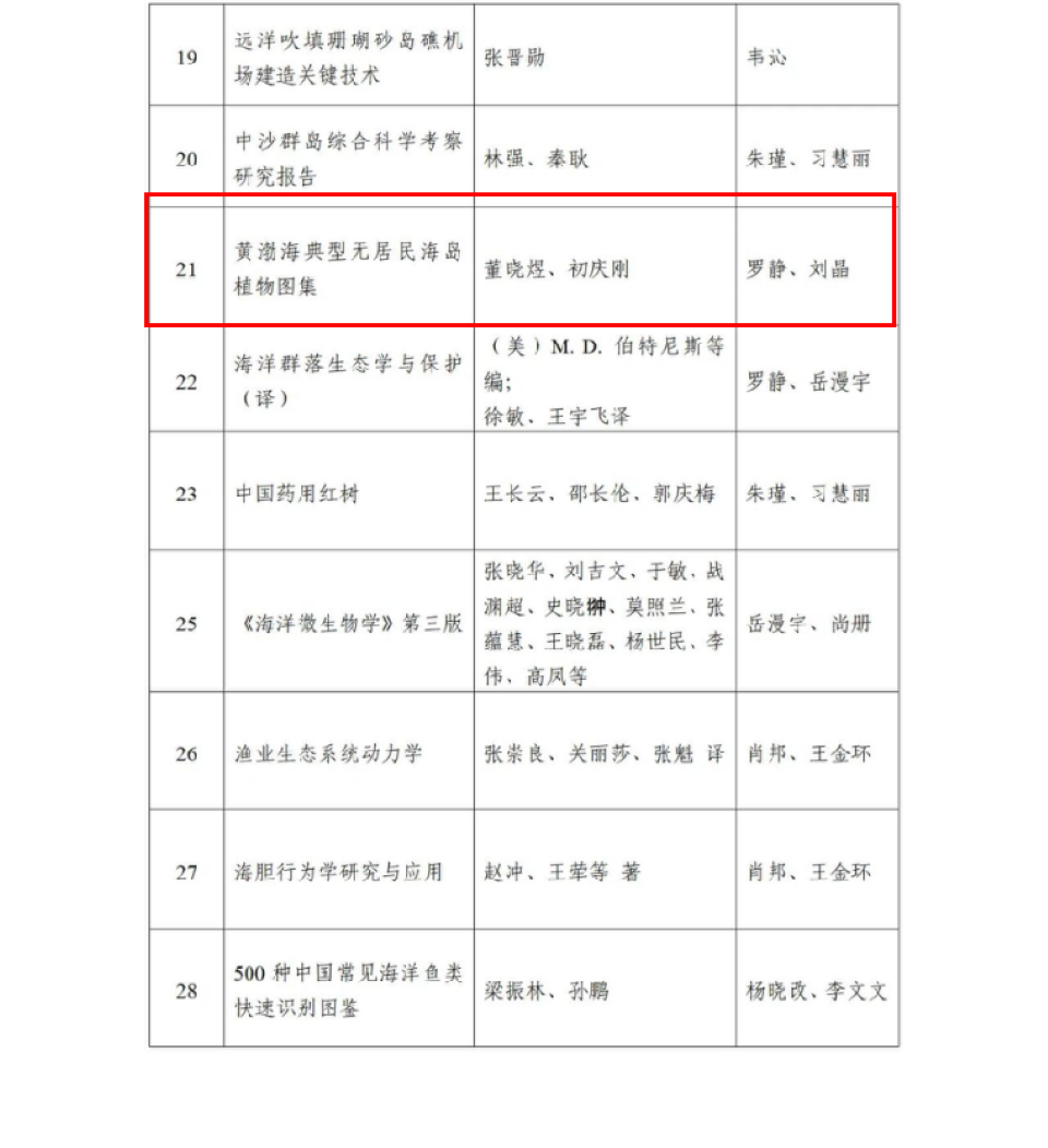 近日,由2026世界杯预测董晓煜教授主编《黄渤海典型无居民海岛植物图集》,成功入选“2025年度海洋优秀科技图书”榜单。