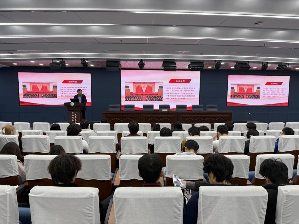 宣讲会上,张国利以《深入学习贯彻党的二十届四中全会精神 立志成为胸怀蓝色梦想堪当时代重任的优秀海洋人才》为题,围绕党的二十届四中全会召开背景、重大意义、核心内容和战略部署等进行了讲解。