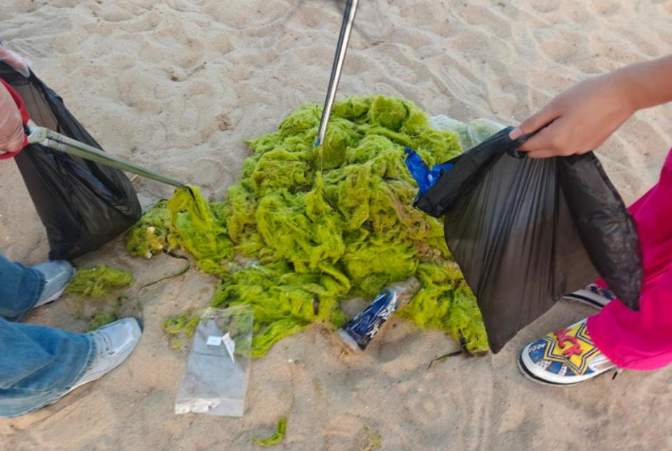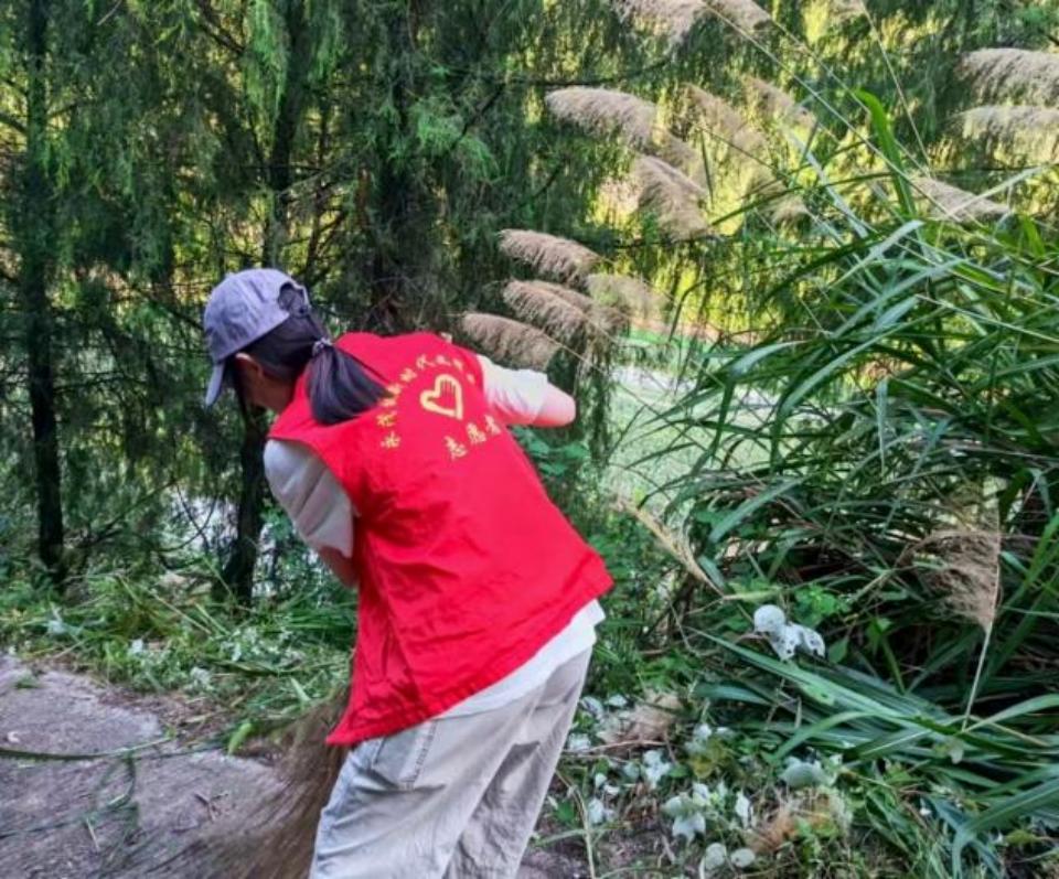 水生动物医学2024级1班实践服务团成员在清理垃圾