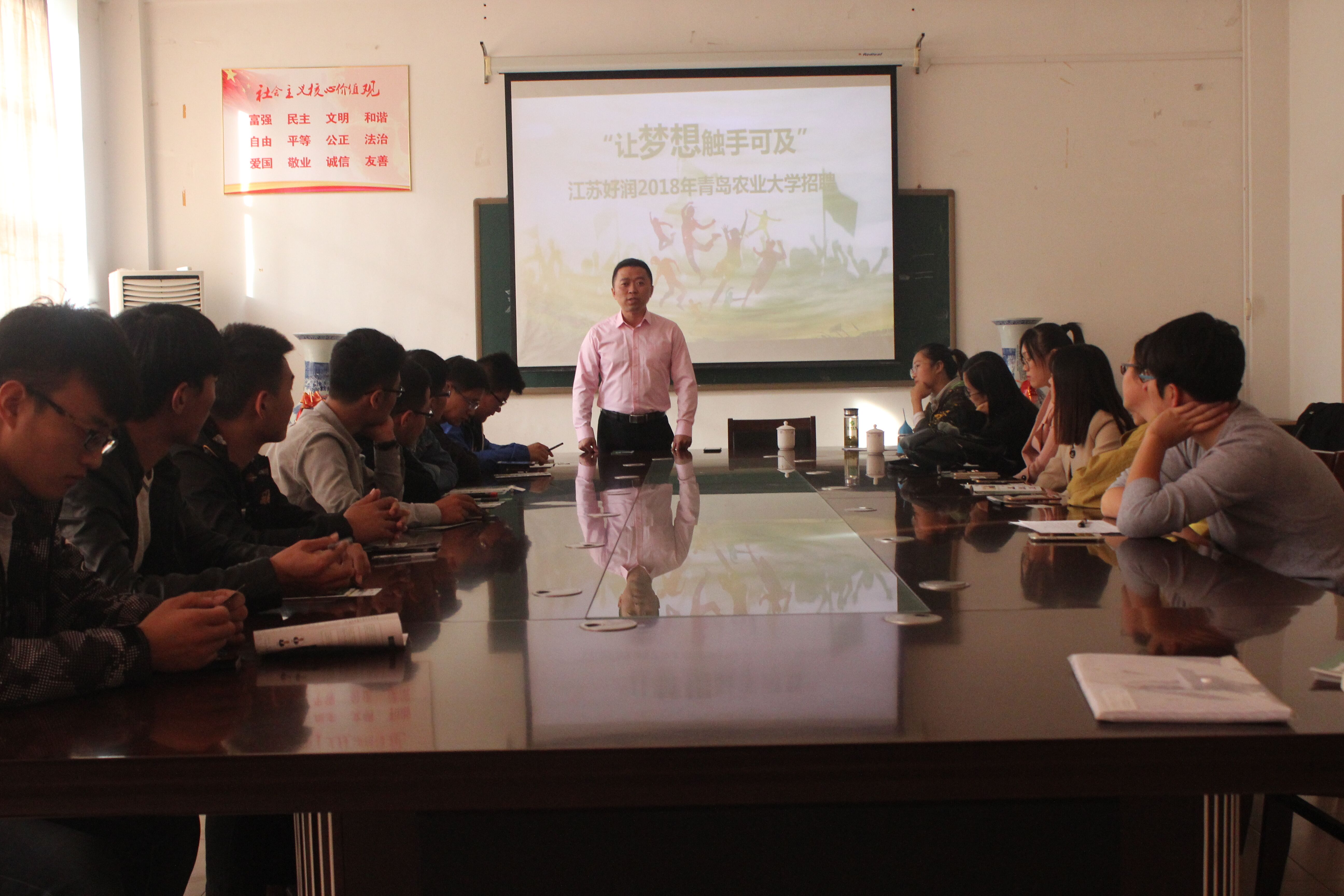 10月13日,2026世界杯预测于公司会议室举办江苏好润生物科技有限公司招聘宣讲会。好润公司人事部经理钱禹霖作宣讲报告,本次宣讲主要面向2018届毕业生。